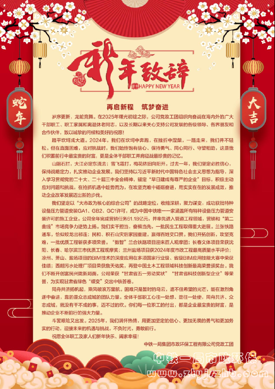 時(shí)間:2024年12月31日    作者:黨群綜合部    來源:中鐵一局集團(tuán)市政環(huán)保工程有限公司黨政工團(tuán)