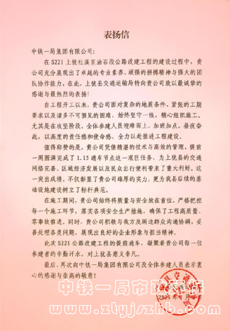 S221公路提前通車(chē)獲表?yè)P(yáng)