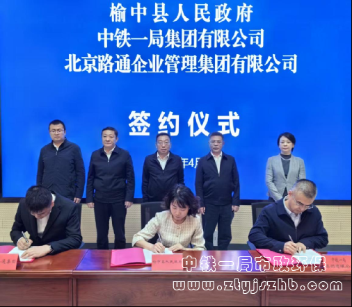 中鐵一局集團市政環保工程有限公司黨委書記、執行董事楊慶勇代表中鐵一局與榆中縣人民政府、北京路通企業管理集團有限公司簽訂《戰略合作框架協議》。