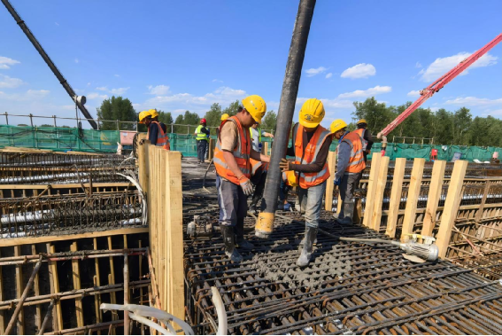 為確保此次順利澆筑,項目部提前統籌、科學規劃,針對工期緊、任務重、跨京白路施工安全管控難度大、作業場地狹窄、雨季天氣多變等多重挑戰,組織開展專項施工部署會議,將施工難點逐一拆解分析,針對性優化施工組織方案;嚴格落實關鍵工序的技術與安全雙重交底,確保施工標準落到實處;加強材料、設備、人員及安全全方位管控,為施工筑牢保障防線。在澆筑過程中,項目部嚴格執行領導帶班制,安排專人在現場全程盯控,以多項有力舉措筑牢施工質量與安全防線,最終按工期目標圓滿完成主線現澆梁全部澆筑任務。