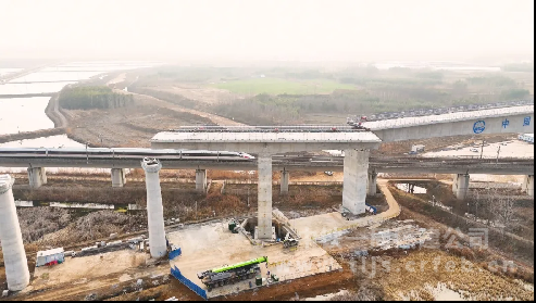 據(jù)悉,該特大橋全長(zhǎng)約17.6公里,先后跨越京滬高鐵、天潛高速等多條交通干線,是全線控制性工程。其中,跨越京滬高鐵部分采用“2×32米轉(zhuǎn)體T構(gòu)梁+2×100米T構(gòu)轉(zhuǎn)體梁”組合設(shè)計(jì),2×100米T構(gòu)梁已于1月16日轉(zhuǎn)體到位。
