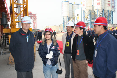 梁場先后舉辦了多期生產技術培訓班,采取放幻燈片,發放自編的學習資料,開辦座談會,知識競賽等多種有效形式,對全體員工進行了6次培訓,請外國咨詢橋梁專家海德先生到梁場親自授課,指導操作要點和注意事項,對投產前的準備工作進行細心安排,周密部署。2006年10月26日,鄭西客專臨潼制梁場舉行了首跨箱梁預制儀式。物貿公司董事長韓學軍、總經理陳強及公司其他領導始終堅守在現場指導施工。經過近8小時的緊張鏖戰,鄭西客專第一跨900噸箱梁終于預制成功。