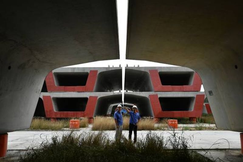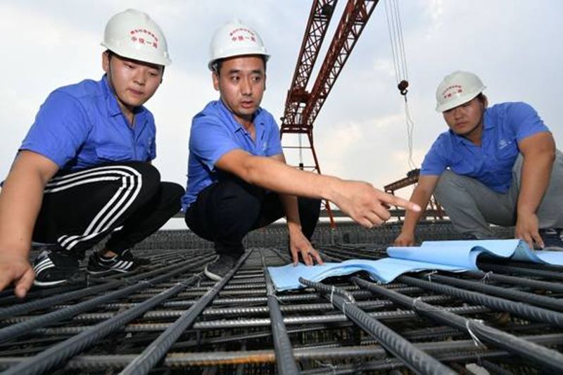 6月23日,在制梁場工地見到馬建市時,他正跟兩名技術(shù)員,一邊說一邊比劃著,腋下夾著一本藍皮資料。