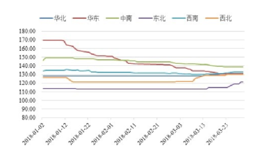從各區域一季度水泥價格指數來看,前期水泥價格較高的地區跌幅更大。北方水泥價格有小幅上漲,東北地區漲幅居全國首位,一季度上漲6.56%,華北地區緩慢上漲一季度合計漲幅2.25%,西北地區一季度價格先跌后漲,合計仍有2.74%的漲幅。華東地區跌幅最大,一季度持續下跌22.64%,中南地區下跌了5.25%,西南地區價格基本保持穩定。