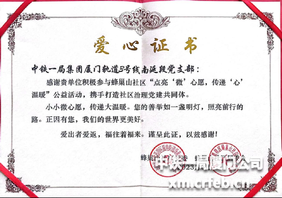 細(xì)微之處見真情。植樹節(jié)當(dāng)日,項目黨支部開展黨員義務(wù)植樹,撿拾白色垃圾,踐行“綠色南延我先行”理念,五一、十一、寒暑假旅游旺季來臨前,組織義務(wù)勞動、進(jìn)行道路微改造,提升城市形象,為游客提供良好的旅游環(huán)境和體驗。中秋佳節(jié)、重陽節(jié)等傳統(tǒng)節(jié)日到來時,黨員志愿者們走訪入戶,免費為社區(qū)困難群眾和老人量測血壓、檢查身體,了解他們的飲食健康和生活狀況并送上了慰問品。類似慰問一線交警、關(guān)愛婦女兒童、服務(wù)廈門馬拉松賽事等故事,不勝枚舉,項目黨支部用實際行動履行央企責(zé)任,收到“紅旗黨組織”“愛心證書”等榮譽。