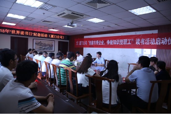 4月23日是 一年一度的“世界讀書日”,當(dāng)日上午,中鐵一局廈門公司工會、團(tuán)委聯(lián)合舉辦了“創(chuàng)建書香企業(yè),爭做知識型職工”主題讀書活動啟動儀式。公司黨委副書記、紀(jì)委書記、工會主席任崇華、廈門片區(qū)各項(xiàng)目書記、基層項(xiàng)目職工代表等30余人參加了啟動儀式。