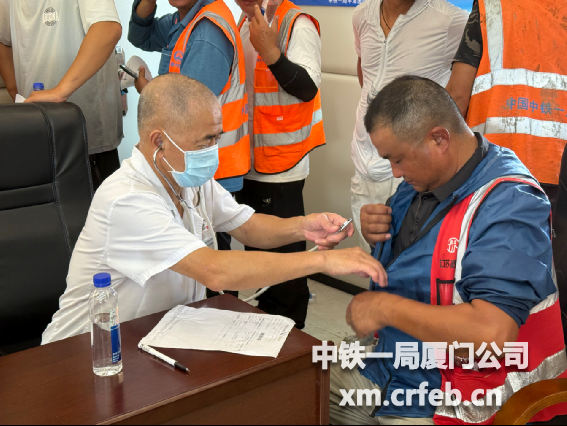 為保障施工一線工人的身體健康,確保一線工人安全上崗,7月23日,平潭國際賽車場項目開展“健康體檢進工地”活動,及時了解和掌握進場工人的健康狀況,從源頭保障施工安全。