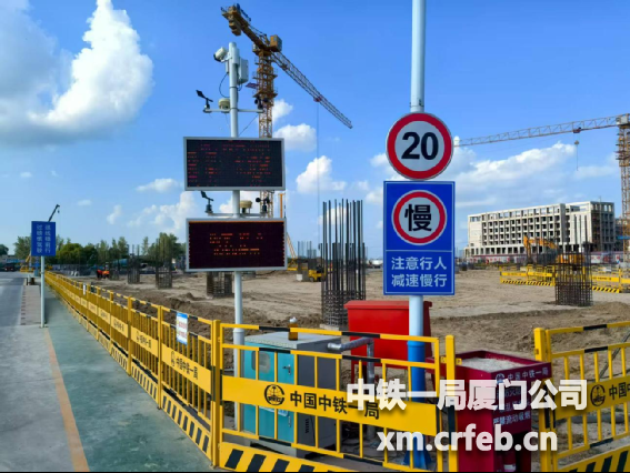 在筑牢地面防線的同時,項目部顯著提升揚塵治理的科技含量與精準度,率先大規模啟用智能化高桿霧炮系統。相較于傳統噴淋系統,高干旋轉霧炮系統具有覆蓋面積更廣、降塵效果更好等優勢,其形成的立體水霧屏障,全天候精準捕捉、抑制高空逸散粉塵,有效解決了傳統設備難以企及的高空揚塵難題。與此同時,揚塵監測系統與智能化高桿旋轉霧炮機在工地內部織密機動防線,這些設備具備遠程操控、智能聯動功能,操作人員可依據粉塵實時在線監測數據和作業面動態,靈活調整噴射角度與霧量,對土方開挖、樁基施工、物料裝卸等瞬時高濃度揚塵點實施“點穴式”精準打擊,大幅提升抑塵響應速度與瞬時污染控制能力。