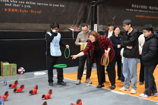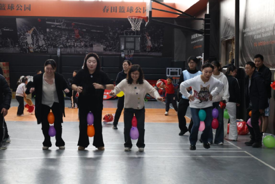 活動開始后,大家踴躍參與“駿馬投星(定點投籃)”、“馬到成功(趕氣球)”、“快馬輕衫(拍氣球穿衣服)”、“一馬當先(夾氣球跑)”、“寶馬迎春(套圈)”