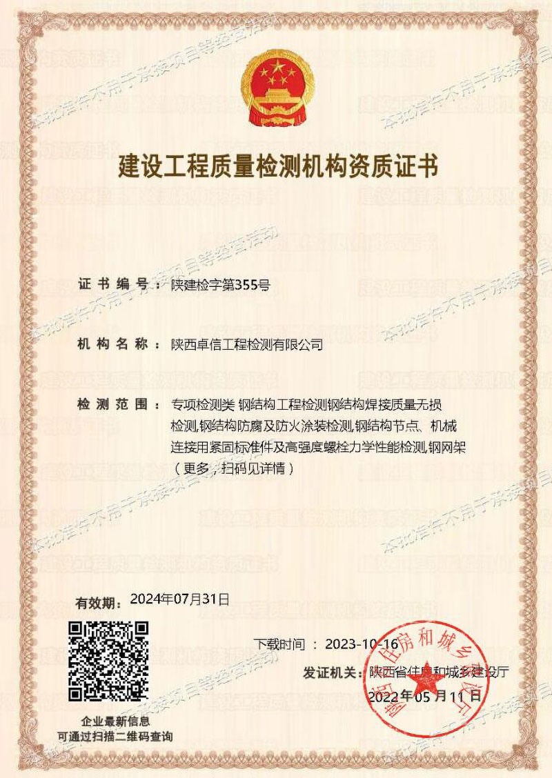 建設工程質(zhì)量檢測機構(gòu)資質(zhì)
